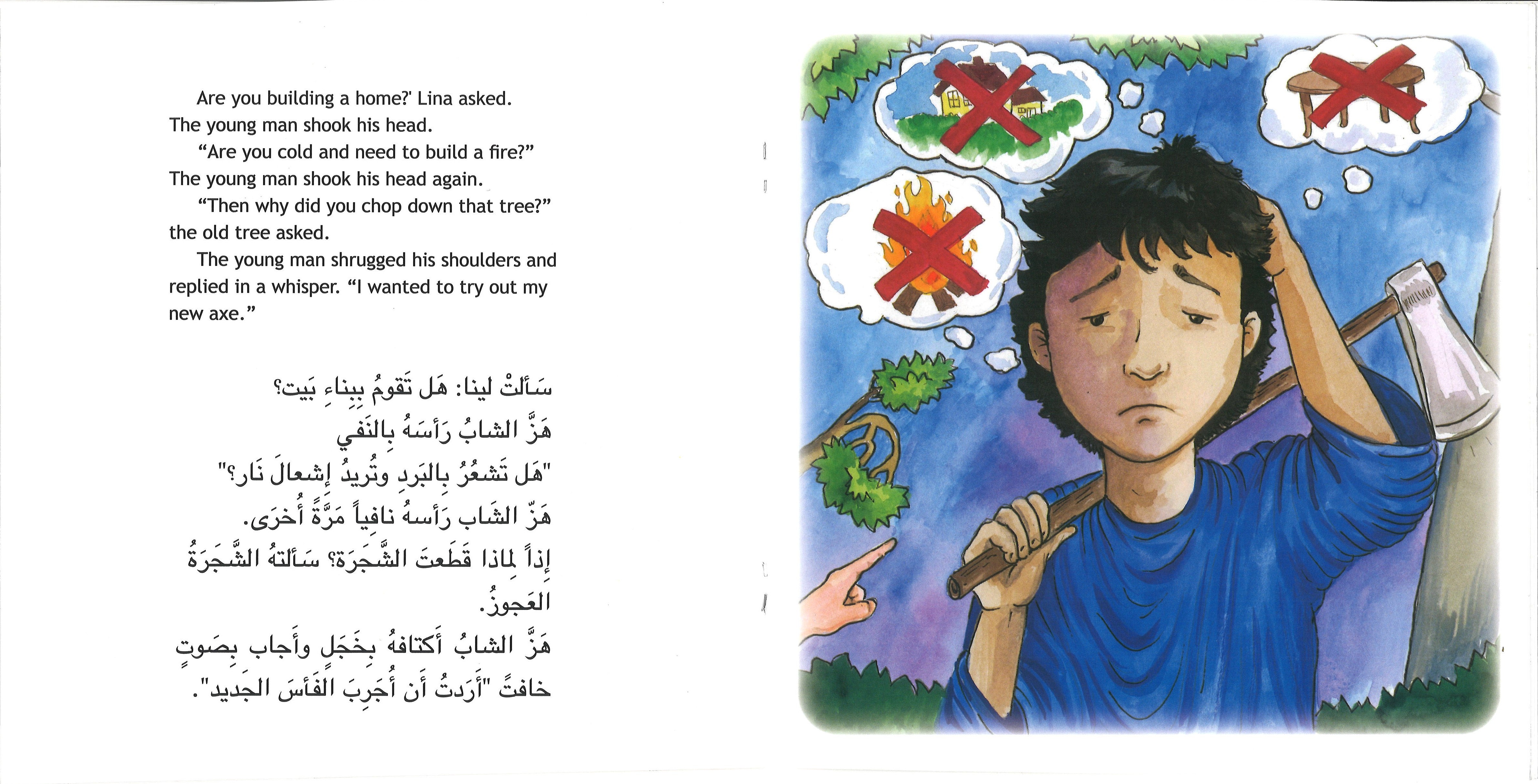 deep in the woods Lina is visiting the old tree who used to travel with her grandfather. Suddenly a tree smashes to the ground and shakes the forest! A young man with his axe walks by. Can Lina and the old tree teach him about how to protect the trees in the forest properly?
