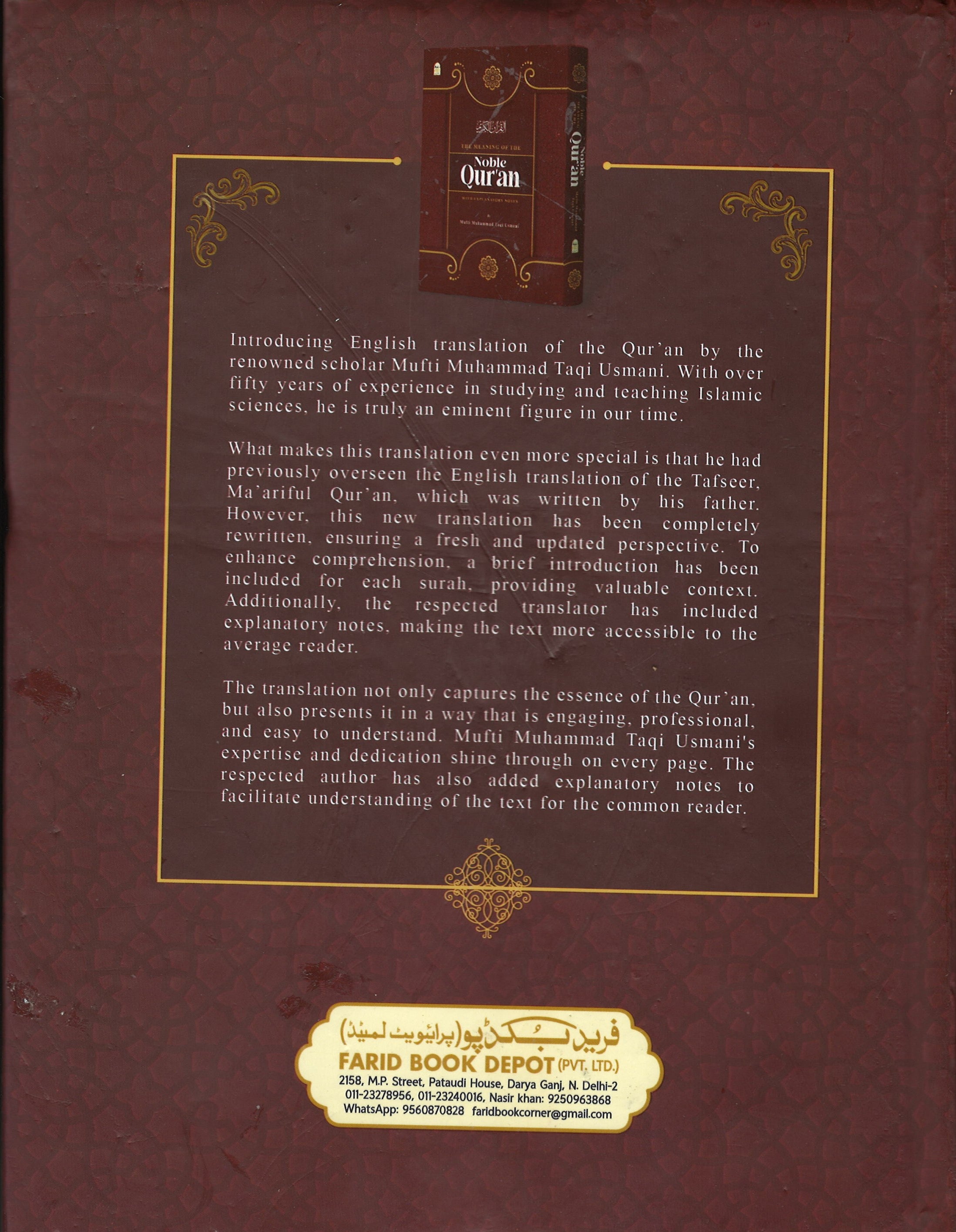 An English translation of the Quran by one of the most eminent scholars of our time, Mufti Muhammad Taqi Uthmani (Usmani), who has been involved in studying and teaching Islamic sciences for more than half a century