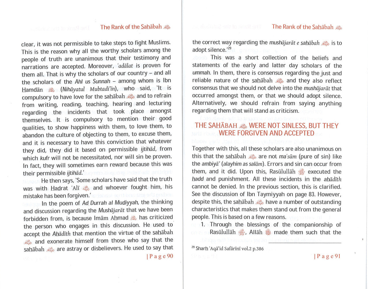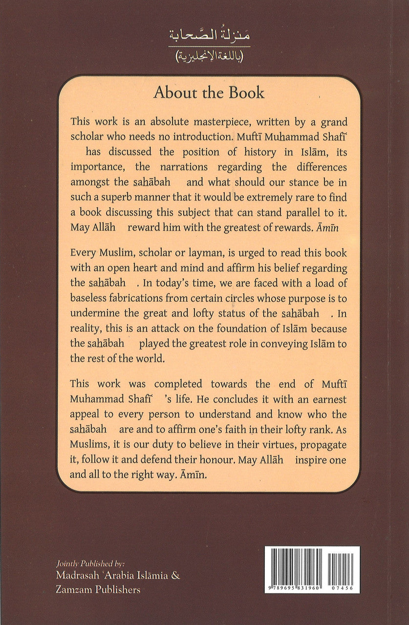 A masterpiece by the former grand Mufti of Pakistan, Mufti Muhammad Shafi Uthmani. The author has discussed the position of history in Islam, its importance, the narrations regarding the differences that existed among the Companions (sahabah) and what the stance of a true believer should be. He concludes with an earnest appeal to every person to understand and affirm faith in the lofty rank of the Companions. English translation by Abdullah Moolla, Madrasah Arabic Islamia, Azadville, South Africa.