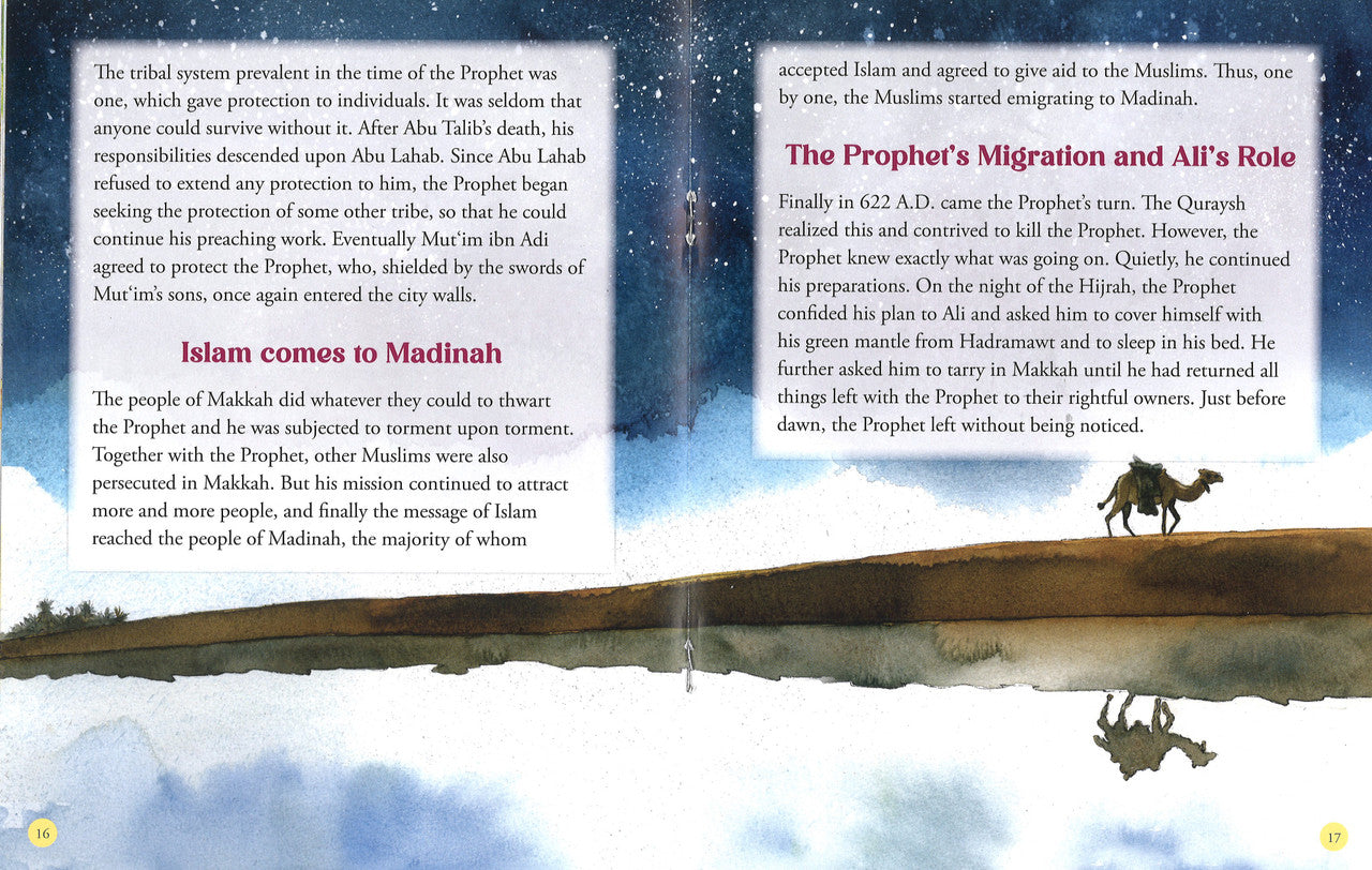 Ali ibn Abi Talib, the cousin and son-in-law of the Prophet Muhammad, was also one of the members of the Prophet's household. The Prophet took him into his care when he was only 5 years old and gave him an excellent upbringing. And from then onwards, he remained with the Prophet's daughter Fatima after the migration to Medinah. In fact, he was so close to the Prophet, that once the Prophet said to him, 'You are of me and I of you.' This closeness, however, entailed great responsibility along with constantly being tested with trying situations. In the course of time, Ali became well-versed in Islamic knowledge, achieved profundity in religion and live a life of deep realization and spirituality