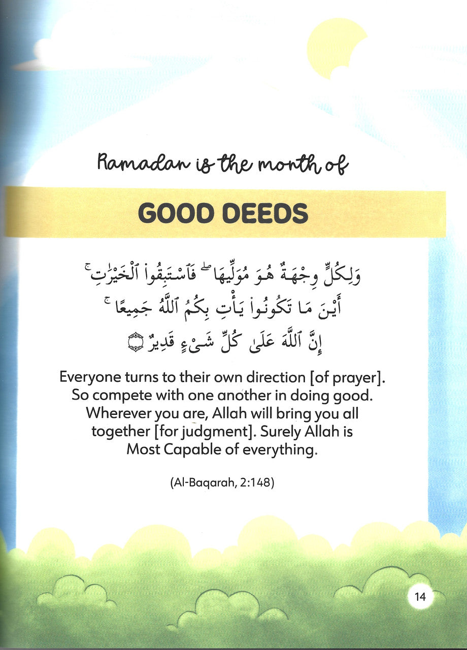 'What I Would Like for Ramadan' revolves around ten themes of the blessed month: fasting, good deeds, Qur'an, patience, kindness, giving, blessings and forgiveness, and learning. With activities designed to promote mindful thinking in children, this book aims to introduce the young ones to the basic principles and the spirit of Ramadan and fasting.