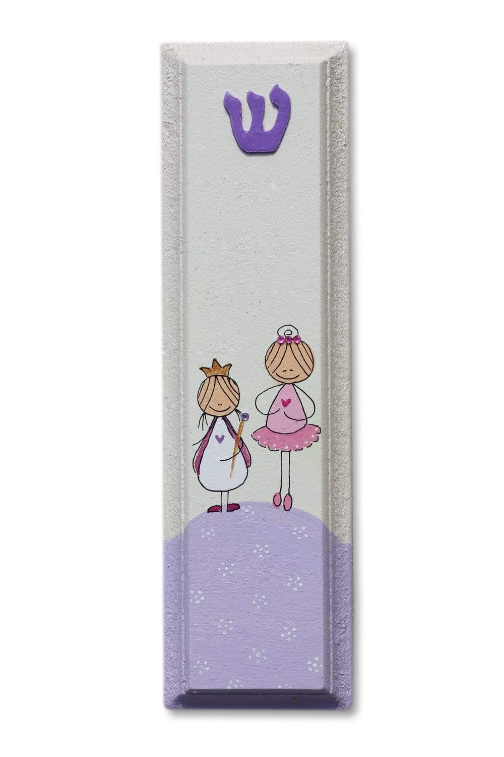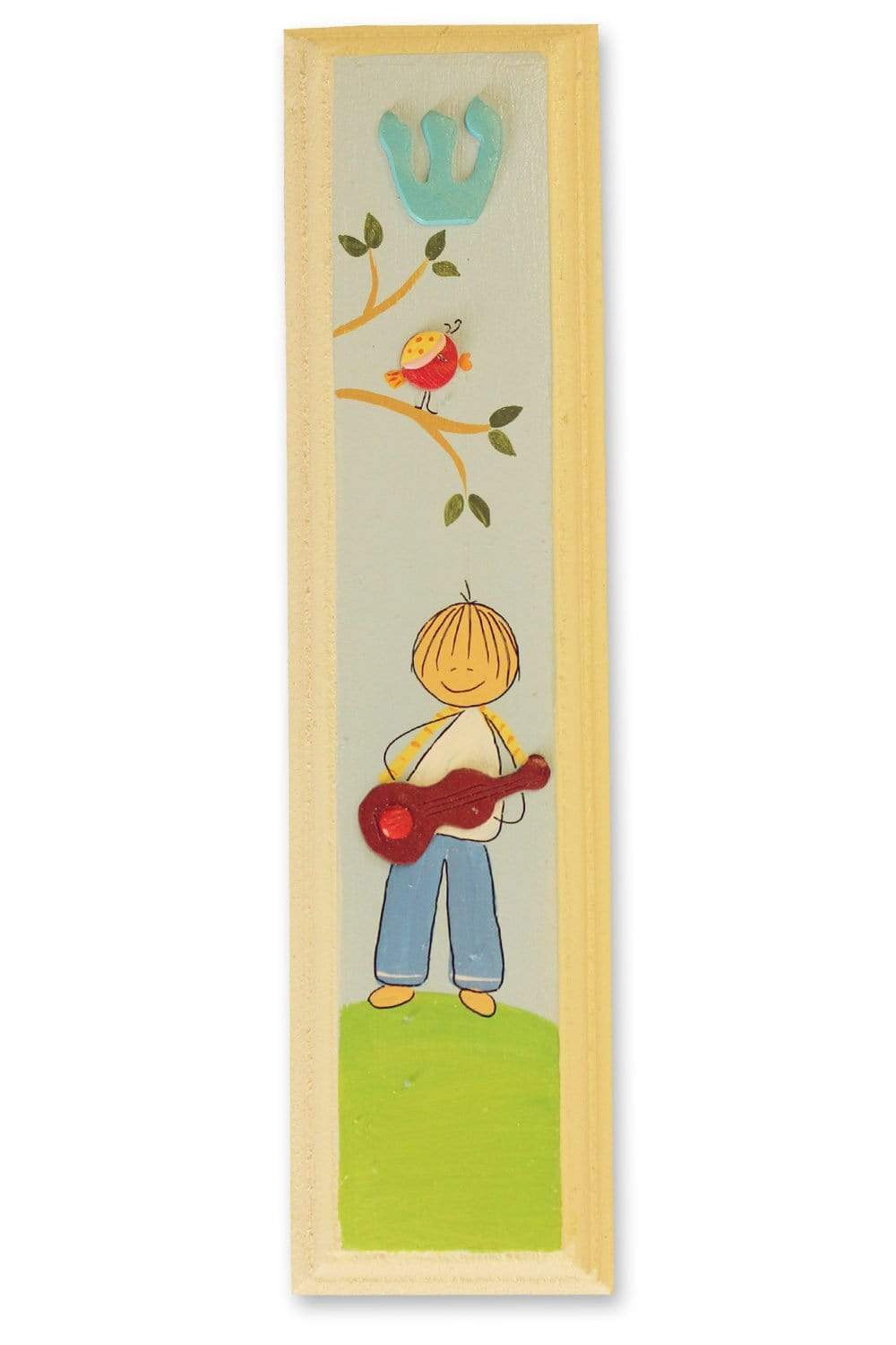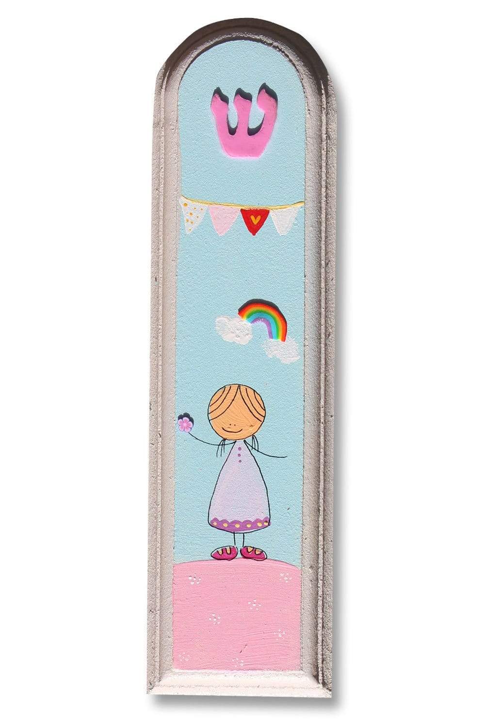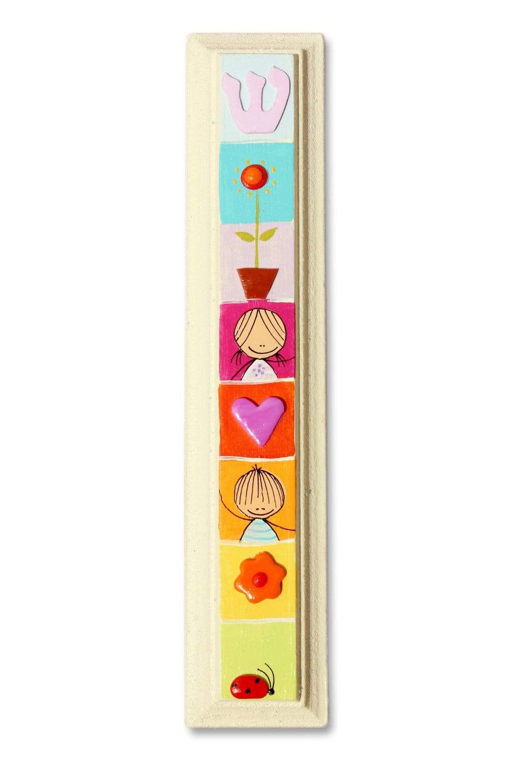 These delightful handmade Mezuzahs are created by Sharon Goldstein of Happy Judaica with acrylic paint on wood. Each depicts a different theme. They are covered with 2 layers of eco-friendly preservative wood finish. The letter 'ש', the biblical name of God, for (Shomer Daltot Yisrael, 'Guardian of Israel's doors'), is at the top of each piece. Each comes with dual-sided tape. Scroll sold separately.