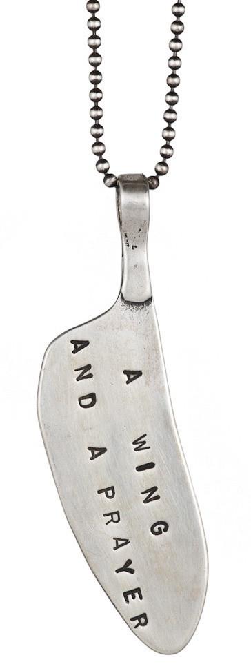 Another meaningful piece of jewelry by Marla Studio. This beautiful Dragonfly Wing has complexity, delicacy, and strength. Stamped on the back with, 'A Wing and A Prayer,' this wing is encouragement to take those leaps of faith.