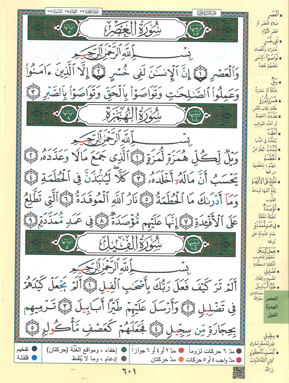 Juz Amma with Tajweed in Color code and brief tafseer in Arabic (10x14)...جزء عمّ وعلى هامشه كلمات القرآن تفسيروبيان