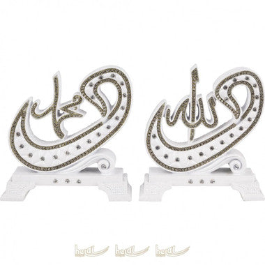 Islamic Table Decor Allah & Muhammad Waw (White)