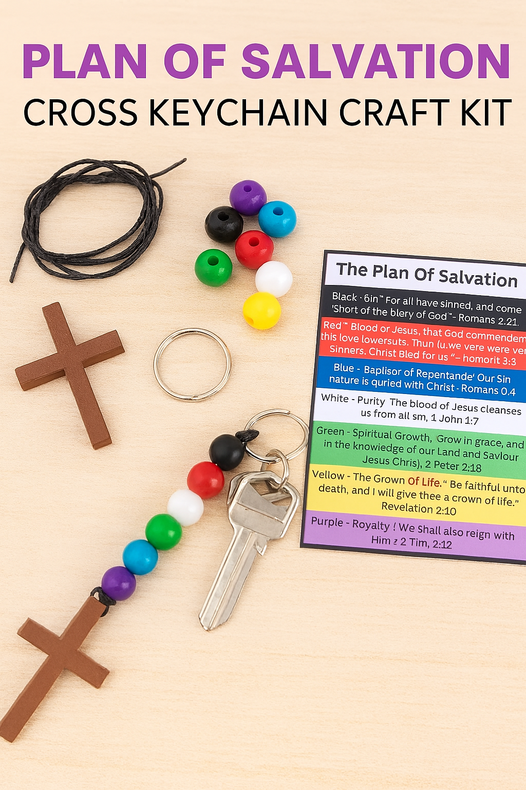 Plan of Salvation Cards with Colors of Faith Cross Keychain Craft Kit