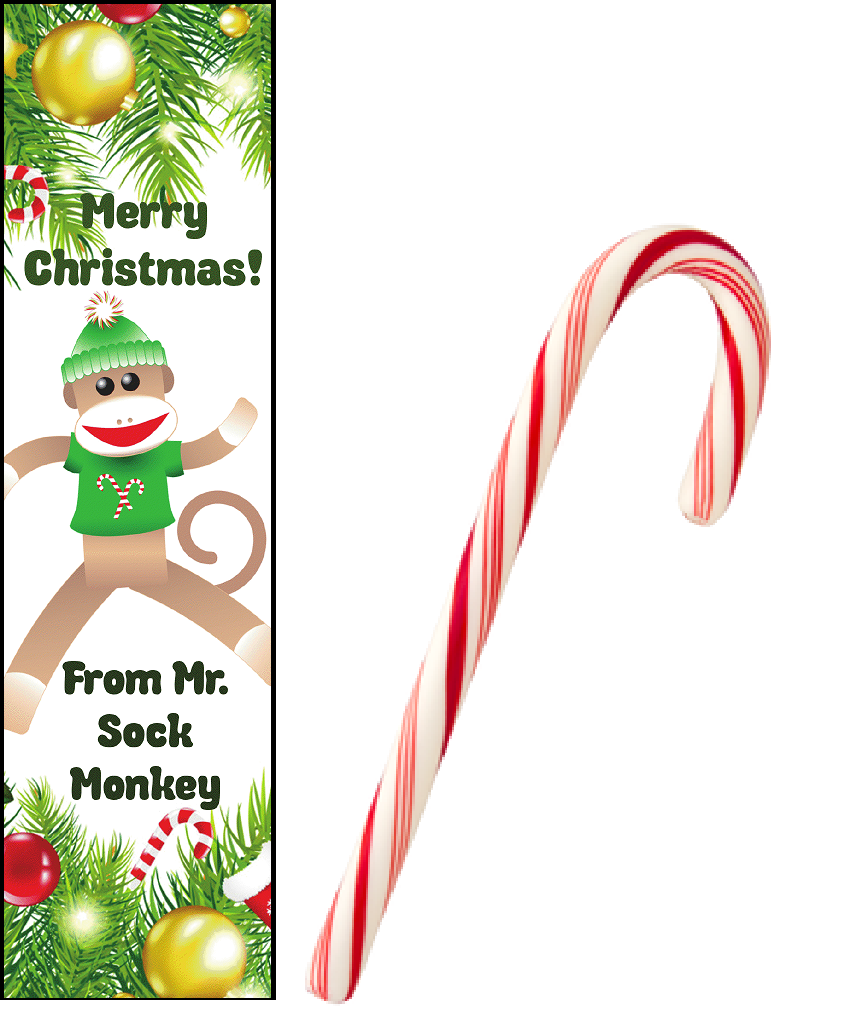 Dozen Merry Christmas Sock Monkey Bookmarks With Candy Canes