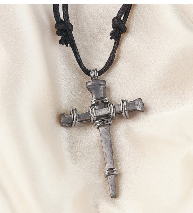 Nail Cross Necklace - Pewter-Tone Faith Symbol on Adjustable Cord, 1 Count
