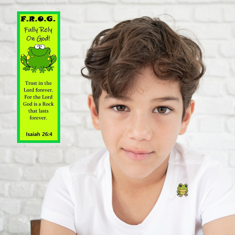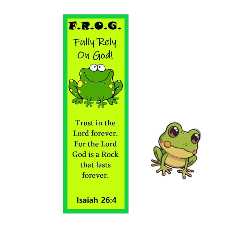 Fully Rely On God F.R.O.G. Bookmark With Frog Lapel Pin Gift Set