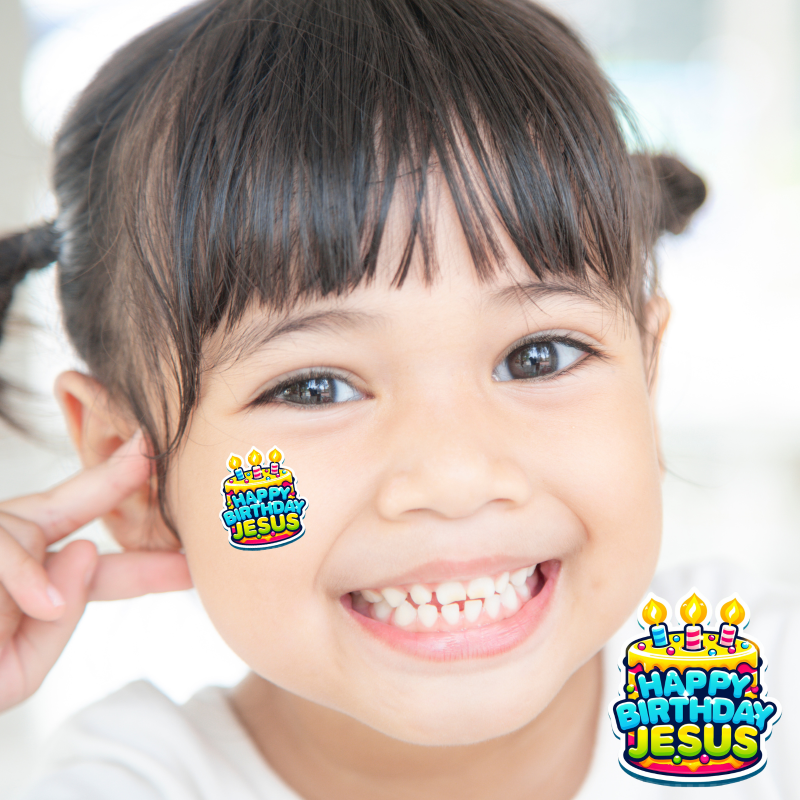 A Set of 50 - Christmas Happy Birthday Jesus Temporary Tattoos