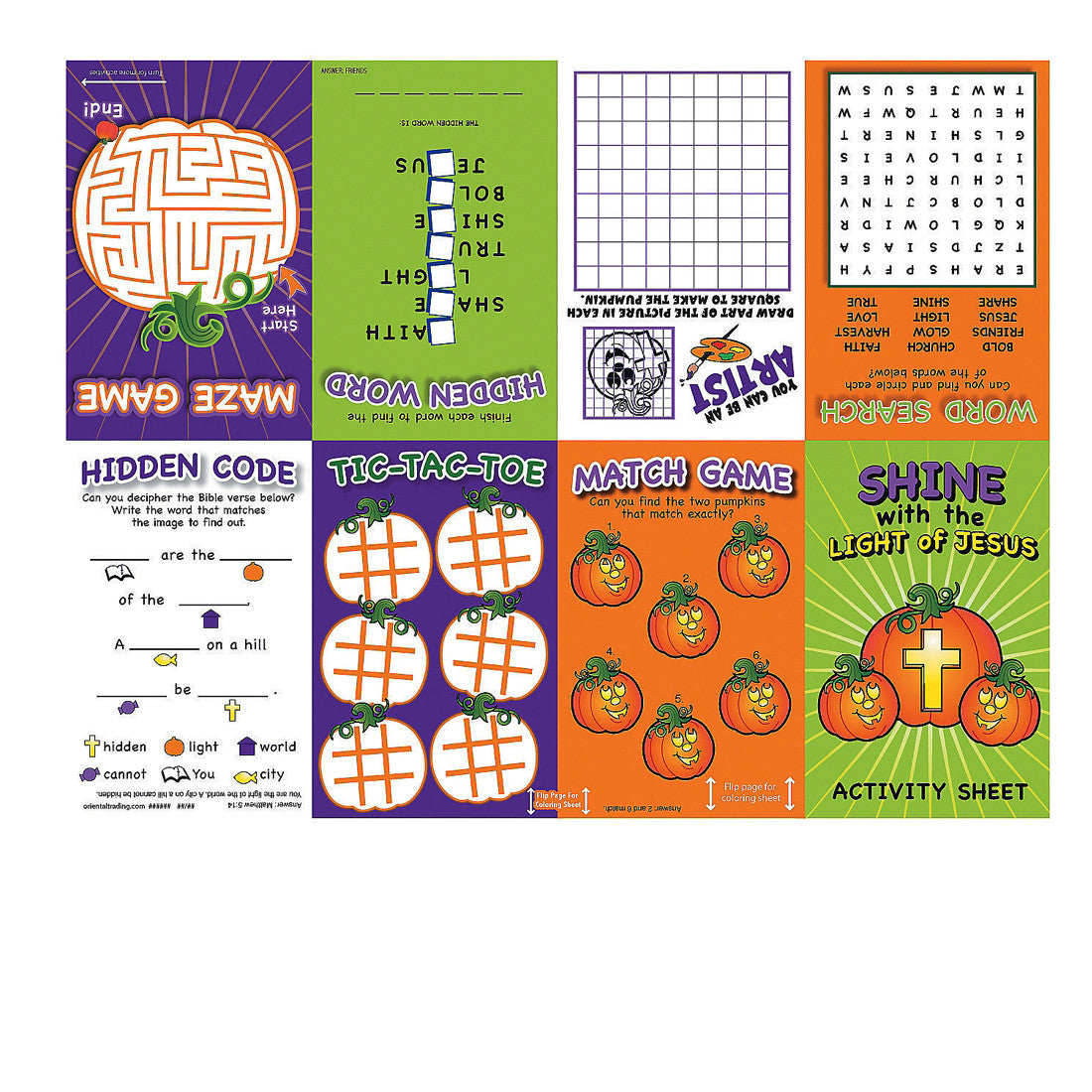 Bulk Pack of (2 Sets of 24 ) 48 Sheets of Shine With The Light Of Jesus Christian Pumpkin Fold-Up Activity Sheets (24 Sheets)