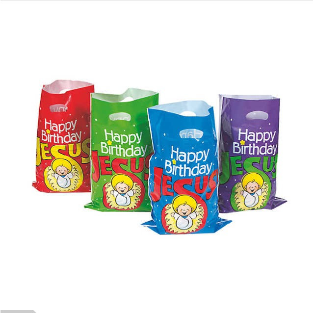 50 Bulk Plastic “Happy Birthday Jesus” 17 Red Green Blue Purple Christmas Jesus In Manger Goody Bags