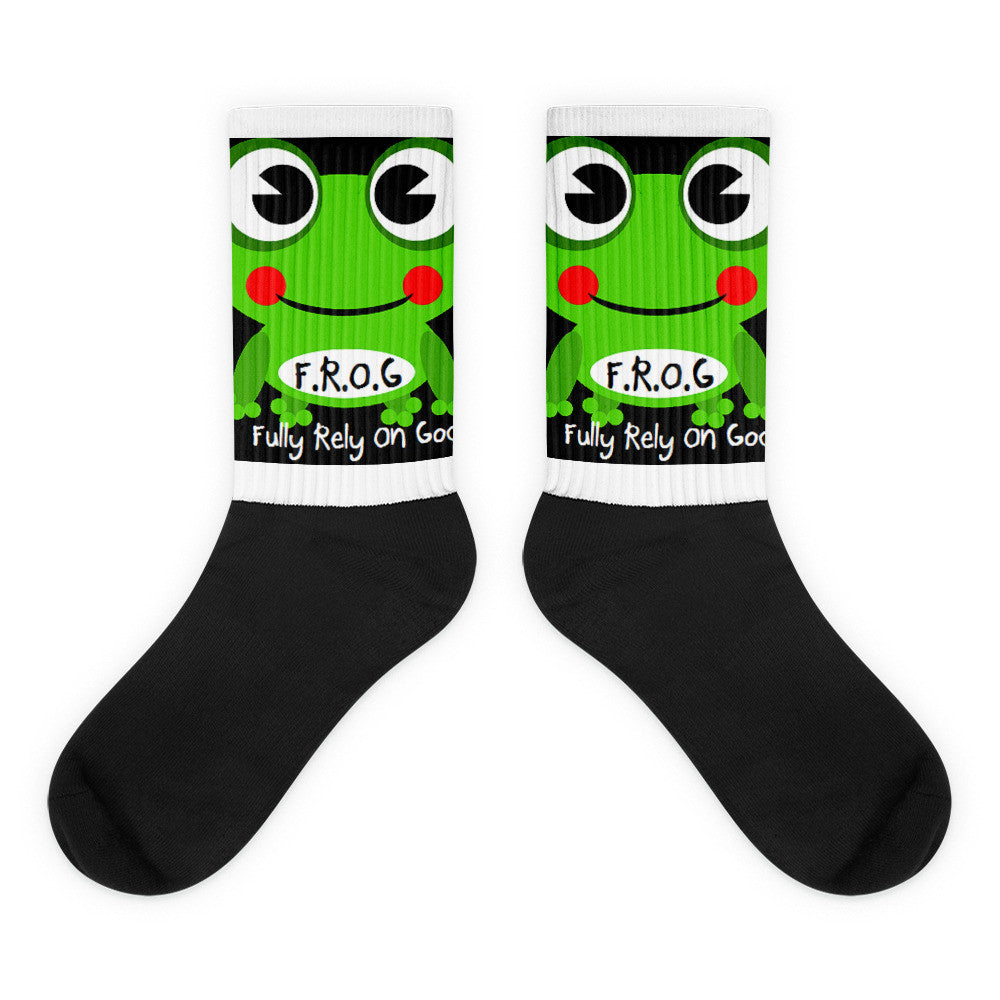Black foot Fully Rely On God Frog Socks