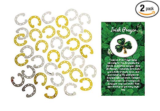 Lucky Horseshoe Foil Confetti with One Irish Prayer Pin 4 Ounces