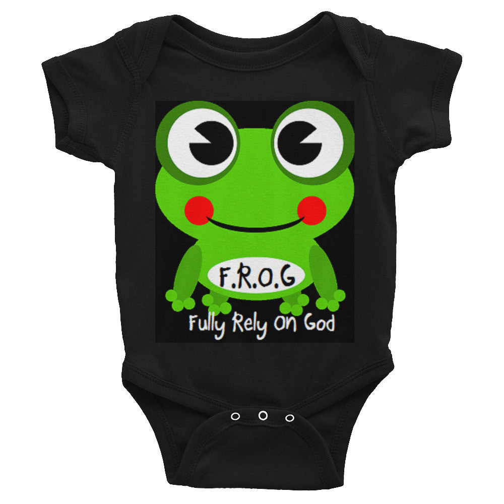Black Fully Rely On God Frog Infant short sleeve one-piece