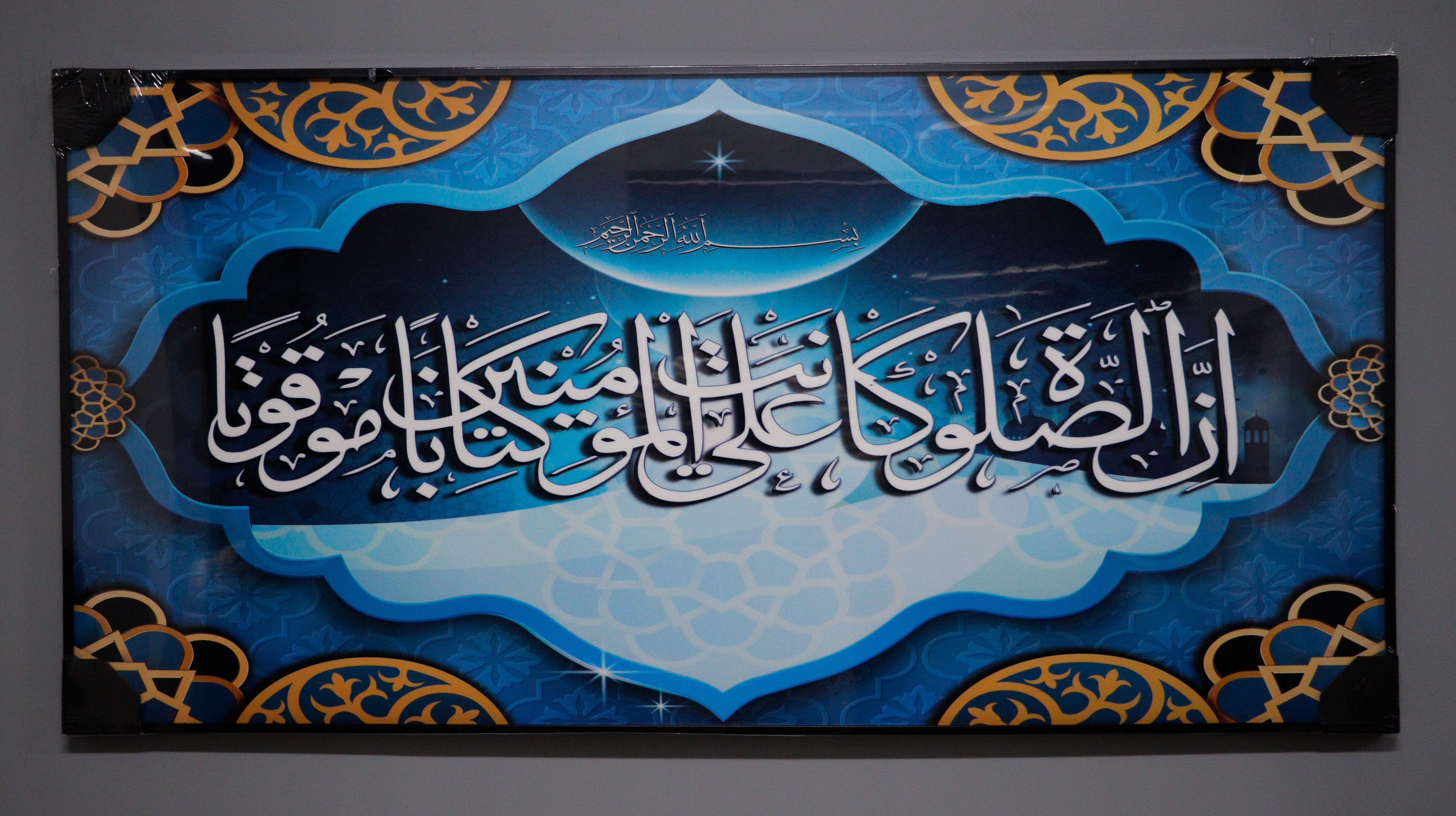 Canvas Painting Calligraphy Wall Art with Frame: Innas-salata kanat alal-mu’minina kitabam mawquta