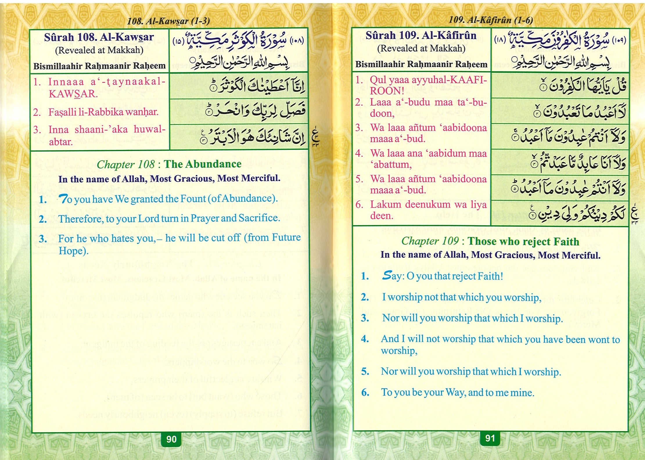 Part Thirty of the Holy Quran with English translation and transliteration (Pocket Size)