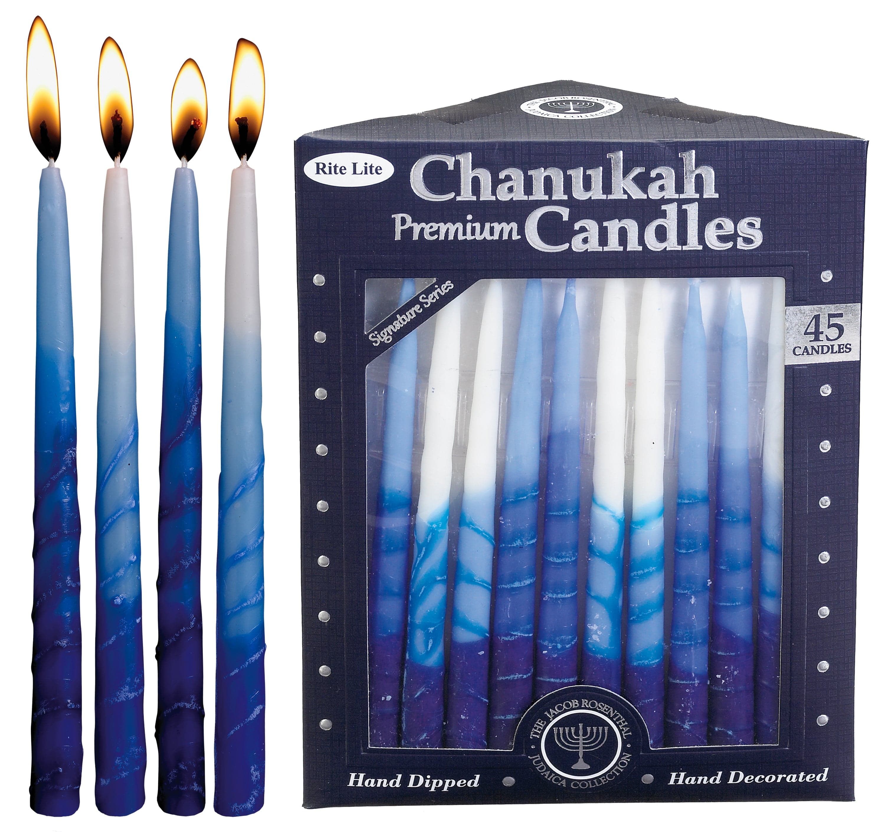 Every candle is unique! Hand-decorated Blue and White Hanukkah Candles introduce a unique blend of blue colors to enhance your lighting ceremony.