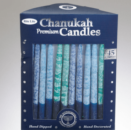 These elegant frosted blue Hanukkah Candles present a unique illumination to the menorah! Hand-dipped and presented in a newly designed box. Celebrate with style and joy!