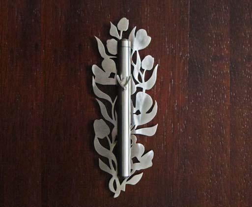 Wild roses climb elegantly up the Wild Rose Mezuzah, bringing a stunning and unusual blessing to your home. Stainless steel is laser cut and then brushed to a shiny finish. Made in the USA by Melanie Dankowicz.