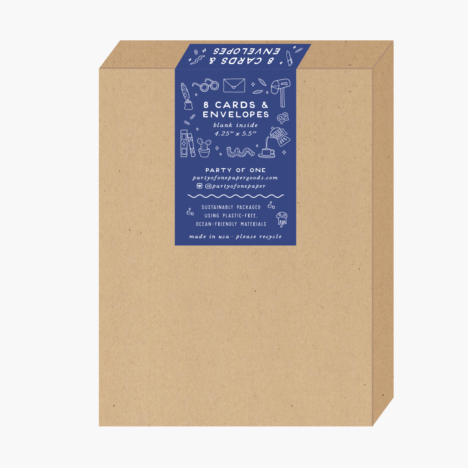 - Plastic-free, ocean-friendly, soy ink on sustainably-sourced paper