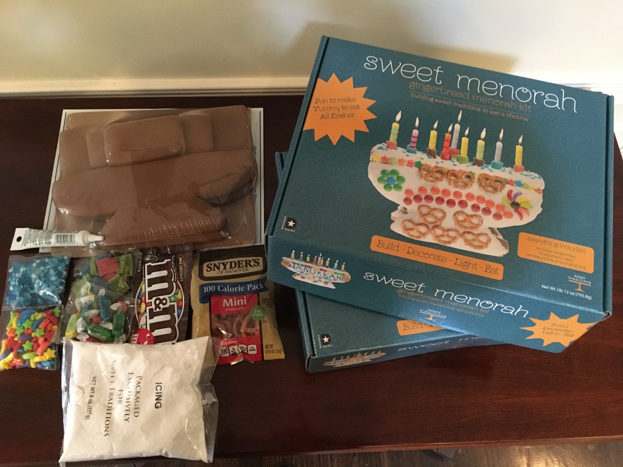 A fun project for all ages! Make your own gingerbread menorah, and then display it all 8 days. Or eat it immediately! The kits are made with kosher ingredients but not certified kosher.