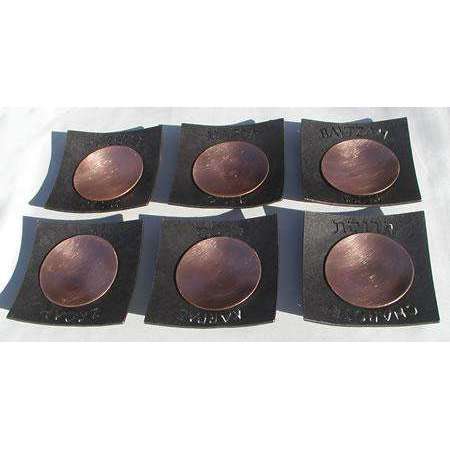 This spectacular Seder plate is made up of six different iron squares with both Hebrew and English imprinted on either side. A bright copper dish rests inside each square to create a beautiful and functional work of art. You can arrange the pieces to make a rectangle, or you can arrange the pieces in a line. All Blackthorne Forge ironwork is guaranteed for life.
