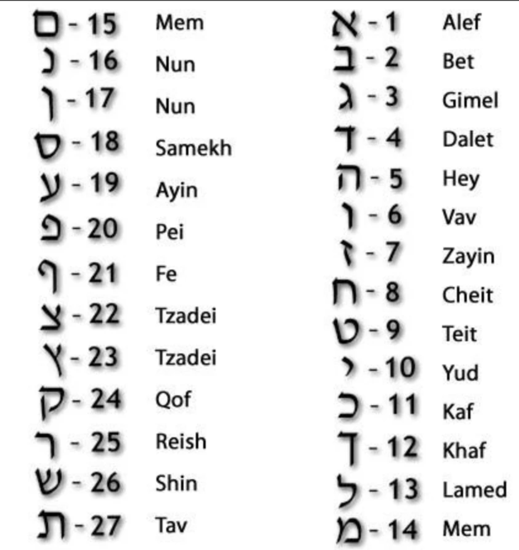 For Hebrew, use the key to choose Hebrew letters by their corresponding numbers. Make sure the first letter of your name is on the far right. We personalize in exactly the order shown.