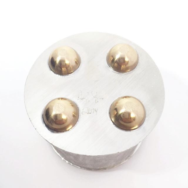 Celebrate generosity of spirit with this simple and contemporary tzedakah box. This beautiful piece by metal artist Joy Stember is fabricated from pewter and brass. The top is fitted into the box and lifts off to remove the money to be given to charity. SIZE: 3.25' diameter.
