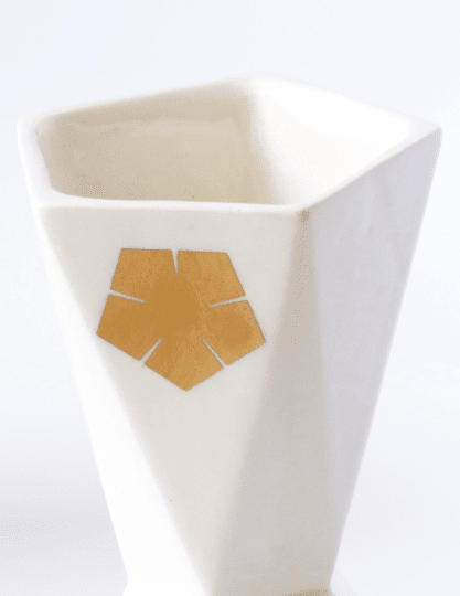 Geometric Kiddush cup is the perfect modern Judaica gift, for wedding or any other Jewish celebration. This white ceramic with 24 karat gold leaf design is inspired by origami.